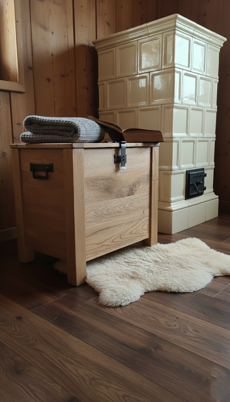 Cassapanca in rovere massello, con costruzione molto robusta, pensata per contenere legna da fuoco, pellets o per ogni altro uso. Questo è il modello a pilastro, disponibile in versione con o senza cassetto, con ferramenta rustica.