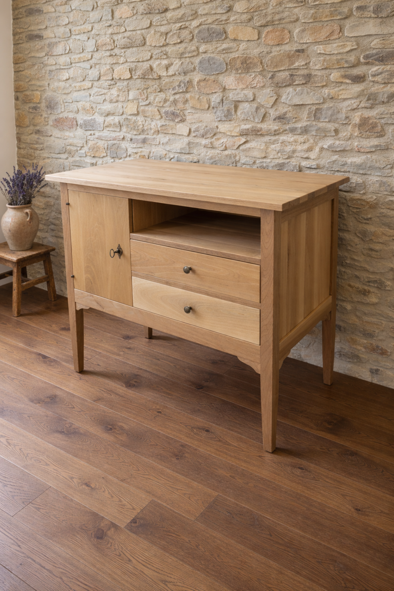 I Cassetti sono assemblati con incastri e giunti a coda di rondine. Tutti i telai e i pannelli delle porte sono intelaiati secondo i criteri dell’antica arte bassanese che permette il movimento del legno nel corso degli anni garantendone la solidità.